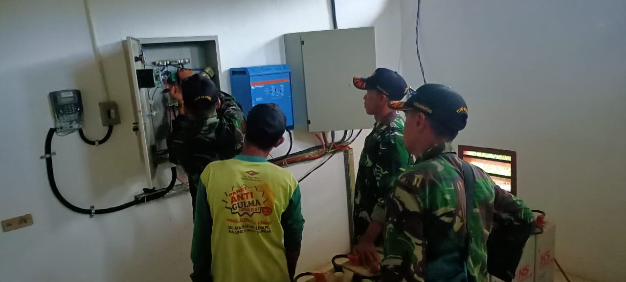 SIMANGGARIS, Inibalikpapan.com – Memperingati Hari Ulang Tahun Perhubungan Angkatan Darat ke-75, Satuan Tugas Pengamanan Perbatasan RI-MLY Yonif 623/BWU melakukan perbaikan dan pemasangan inverter serta pemasangan aliran listrik untuk penerangan lampu melalui PLTS (Solar Cell) listrik tenaga surya (PLTS) yang sudah 8 bulan tidak berfungsi di Kampung Dayak, Desa Sekaduyan Taka, Kecamatan Simanggaris, Kabupaten Nunukan, Kaltara, Senin (23/11/20).