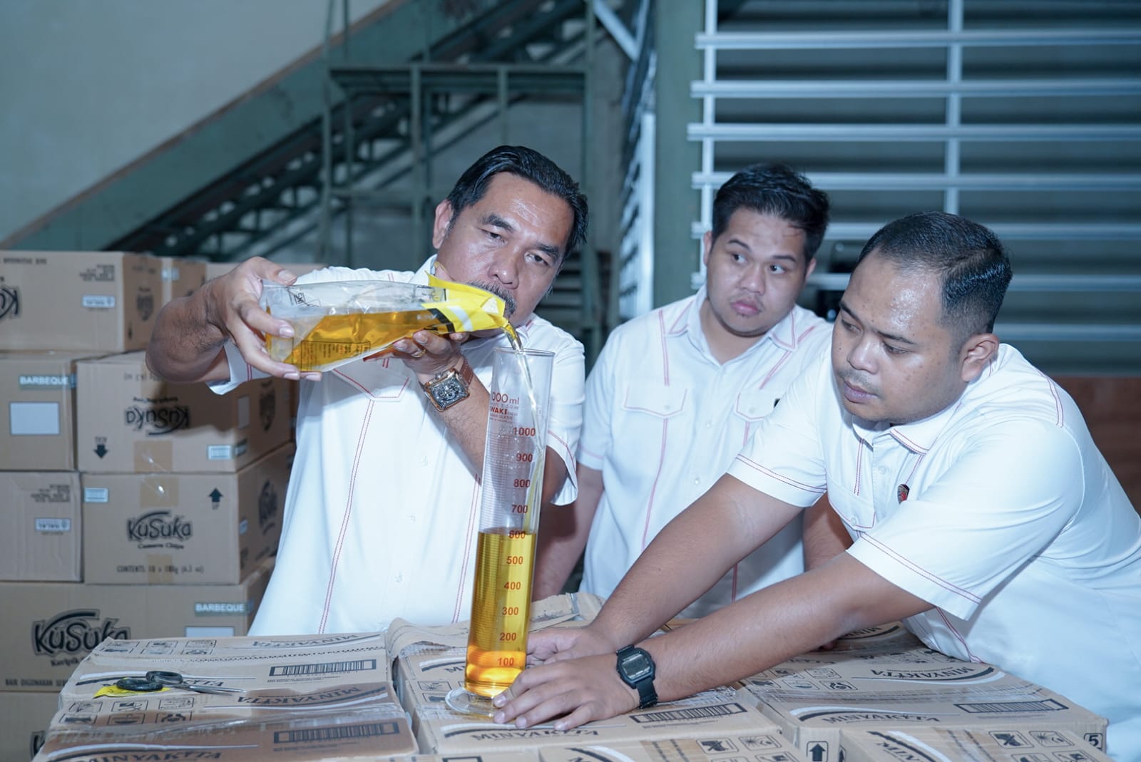 Hasil pengecekan sementara menunjukkan kemasan dan takaran Minyakita di gudang tersebut sesuai standar. Dengan harga tetap dalam batas Harga Eceran Tertinggi (HET) Rp15.700 per liter.