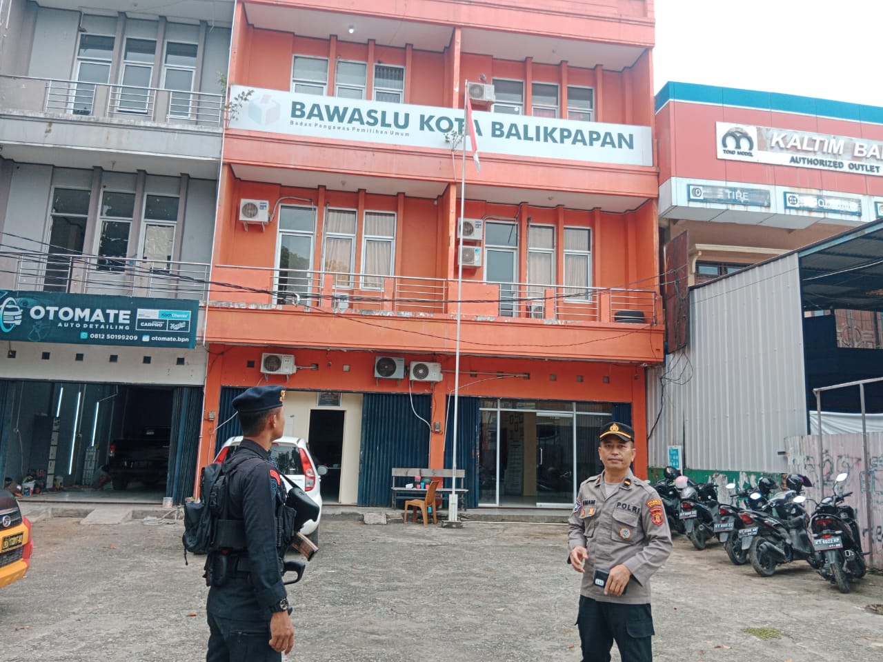 Kegiatan patroli ini difokuskan pada Kantor Badan Pengawas Pemilu (BAWASLU) Kota Balikpapan, salah satu lokasi strategis yang perlu diawasi dalam proses pemilu mendatang.