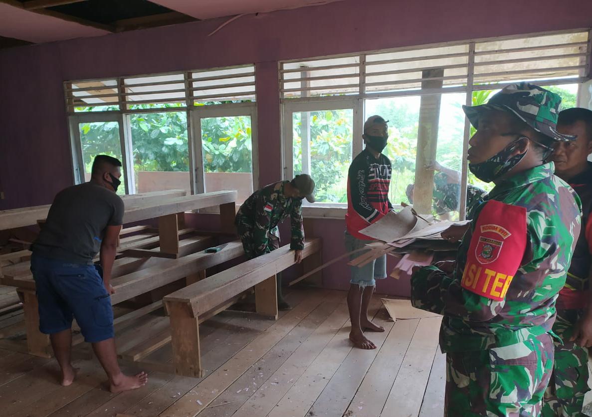 Satgas TMMD Bersama Warga Merehab Gereja Katolik ST. Yustinus