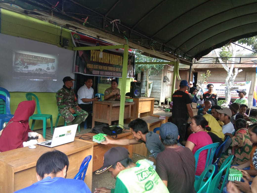 Kali ini satgas TMMD ke 106 Kodim 1001/Amt-Blg bekerjasama dengan BNPB Kabupaten Balangan memberikan penyuluhan Karhutla guna mencegah kemungkinan terjadinya kebakaran hutan dan lahan di dase binuang santang, Rabu (23/10/2019).