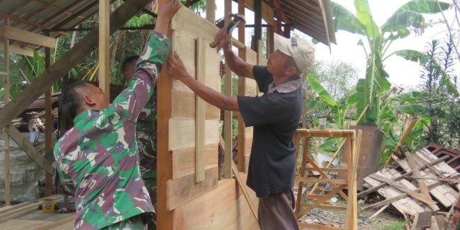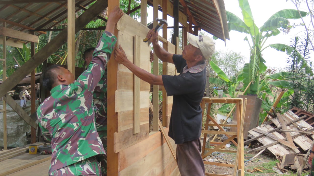 Dilokasi kegiatan TMMD di Desa Antasari nampak warga Bahu membahu bersama anggota satgas TMMD Ke 106 melakukan bedah rumah warga kurang Mampu.