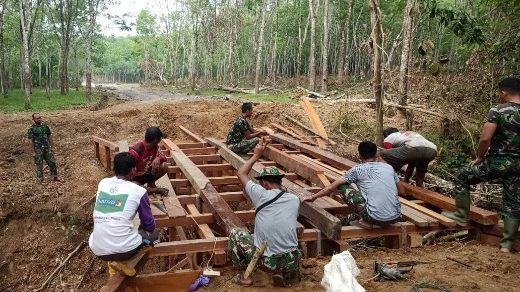 “Pokoknya kami ingin pembuatan jembatan dan jalan segera selesai, makanya kami turut membantu bapak Tentara,” kata Agus (25) salah satu masyarakat yang ikut membuat jembatan kayu ulin