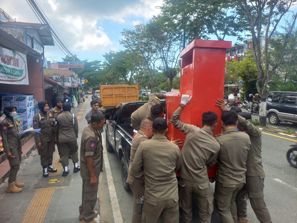 Pantauan Inibalikpapan di lokasi penertiban, puluhan alat dispenser Pom Mini diangkut petugas menggunakan truk milik Satpol PP, DLH dan DPU Balikpapan.