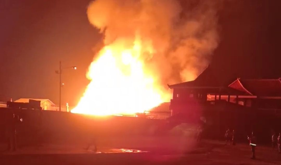 Butuh 10 unit pemadaman untuk menjinakan api yang melahap bangunan yang berada di pinggir laut.