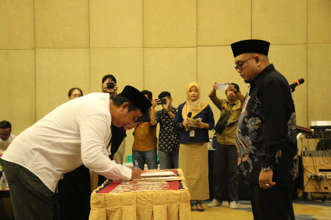 Kemudian, ratusan sekretariat se-Kelurahan Kota Balikpapan itu pun melalukan penandatangan pakta integritas. Yang disaksikan lansung Bawaslu, Lurah se- Kota Beriman serta para Forkopimda di Ballroom Hotel Novotel Balikpapan.
