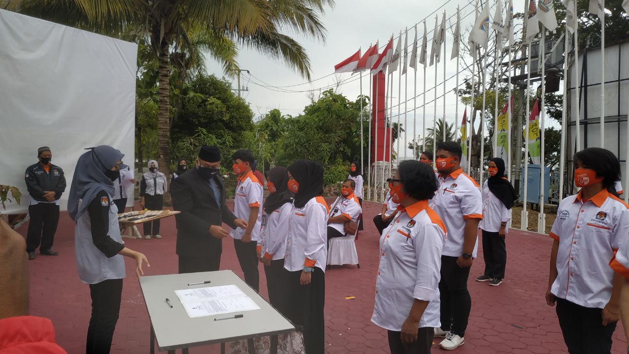 BALIKPAPAN, Inibalikpapan.com — sebanyak 25 Relawan Demokrasi menjalani pengukuhan yang dipimpin Ketua KPUD Balikpapan Noor Thoha, di halaman kantor KPUD jalan Jenderal Sudirman, Sabtu pagi (12/9/2020).