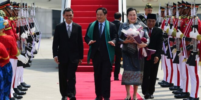 Selanjutnya, PM Laos Sonexay Siphandone beserta pendamping yang tiba sekitar pukul 13.20 WIB. PM Laos disambut oleh Pj Gubernur Banten Al Muktabar dan Staf Ahli Menteri Bidang Hubungan Kelembagaan dan Masyarakat Kemendikbudristek Muhammad Adlin Sila.