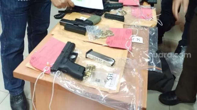 Sejumlah barang bukti yang dilimpahkan diantaranya pistol dan satu senjata laras panjang berwarna hitam. berikut amunisi. Pelimpahan barang bukti itu sekitar pukul 10.00 WIB hari in.i