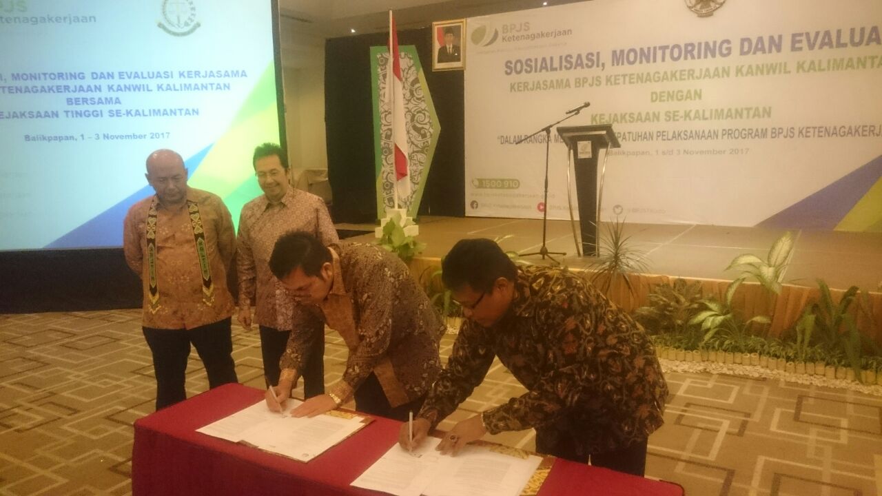 Karena untuk untuk menekan perusahaan yang tidak mengikutsertakan karyawan dalam BPJS ketenagakerjaan, BPJS Ketenagakerjaan melakukan MoU dengan Kejaksaan se- Kalimantan, di Hotel Jatra, Rabu (1/11/2017) lalu.