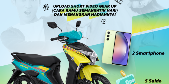 Upload short video Gear Up (cara kamu semangatin hari) dengan menambahkan backsound Jingle Gear 125 dalam video sebagai persyaratan wajib. Upload short video kamu seperti dance, vlog, parody, sketch ataupun cinematic.
