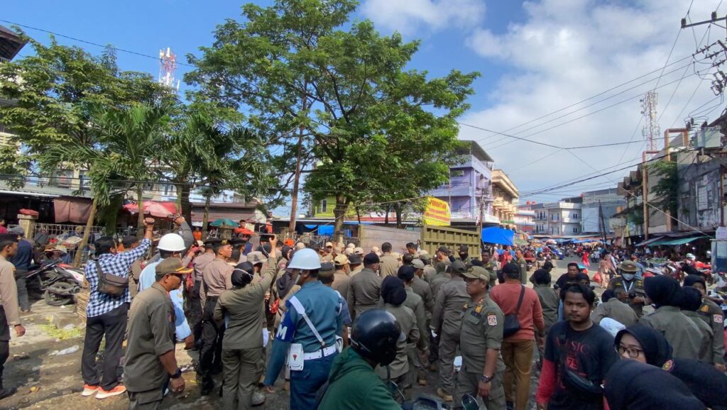 Dalam penertiban yang berlangsung pukul 08.00 wita, Pol PP dibantu petugas kepolisian dan TNI.