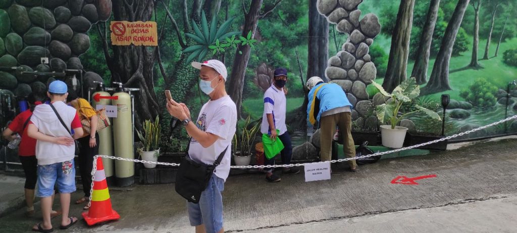 Lita bersama rekan datang untuk mengambil air pengobatan yang diambil dari keran milik YHS.