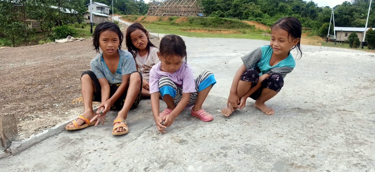 Keceriaan dari anak-anak warga RT 6 semakin terlihat. mereka dengan ceria bermain di jalan yang baru saja dibangun oleh Satgas TMMD ke 109 Wiltas Kodim 0910/Malinau.