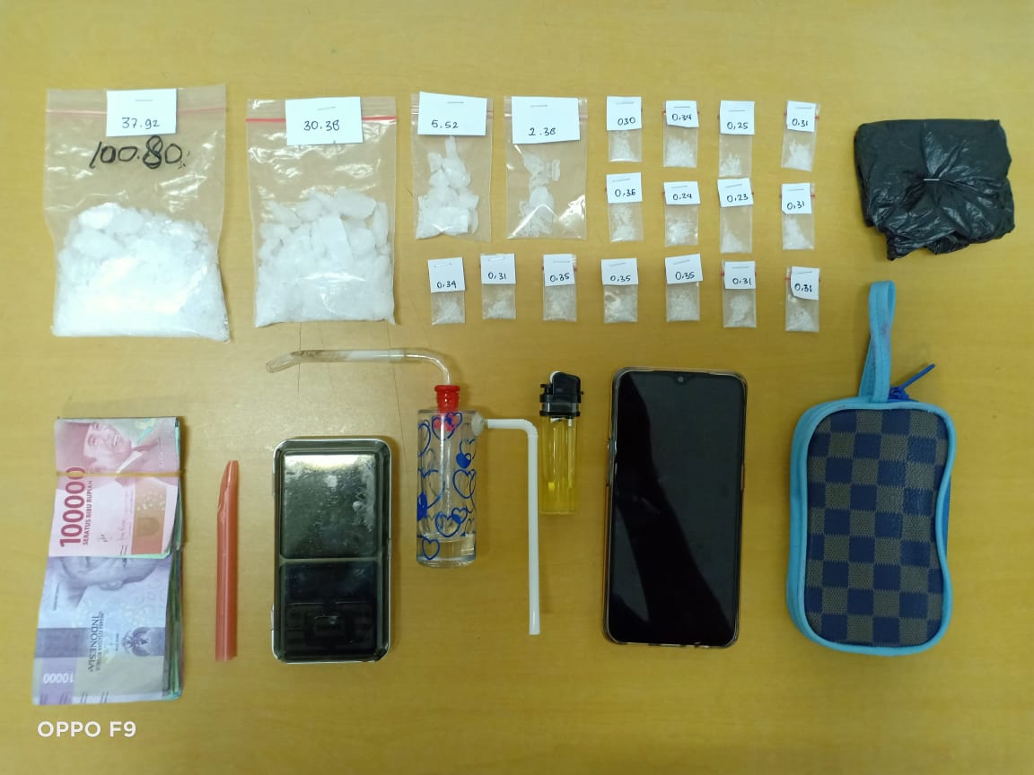 “Sekitar pukul 16.00 wita kami melakukan penggerebekan rumah ditemukan 19 poket sabu-sabu yang diakuinya adalah barang miliknya”, ucap Kabid Humas.