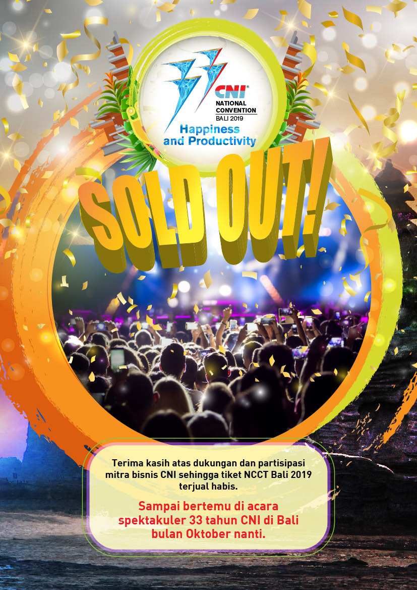 “Terima kasih atas dukungan dan partisipasi mitra bisnis CNI sehingga tiket CNI National Convention Bali 2019 telah terjual habis. Sampai bertemu di acara spektakuler 33 tahun CNI di Bali bulan Oktober nanti!” tukas Yudi.