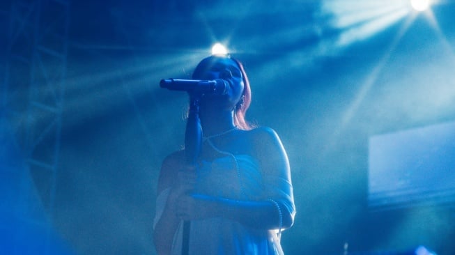 Meskipun tanah berlumpur dan gerimis, semangat penonton tetap tinggi. Ini terlihat saat penampilan Nadin Amizah di Plainsong Live Stage, di mana tepuk tangan, sorakan, dan peluit terdengar, membuat senyum cerah di wajah Nadin Amizah.