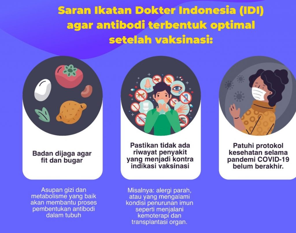 Selain itu, penting juga setelah divaksinasi kita tetap menjaga tubuh tetap fit dan bugar. Badan kuat, virus minggat!
