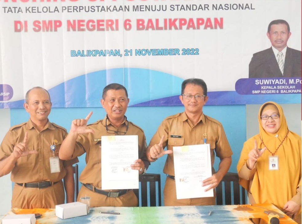 Ditempar terpisah, Kepala SMPN 6 Balikpapan, Suwiyadi MPd sangat berterimakasih kepada Dispustakar Balikpapan, khususnya Kabid Perpustakaan, Kartini yang sudah melakukan pembinaan dan membimbing guna menjadikan perpustakaan sekolahnya menjadi lebih baik serta diarahkan menuju standar nasional.