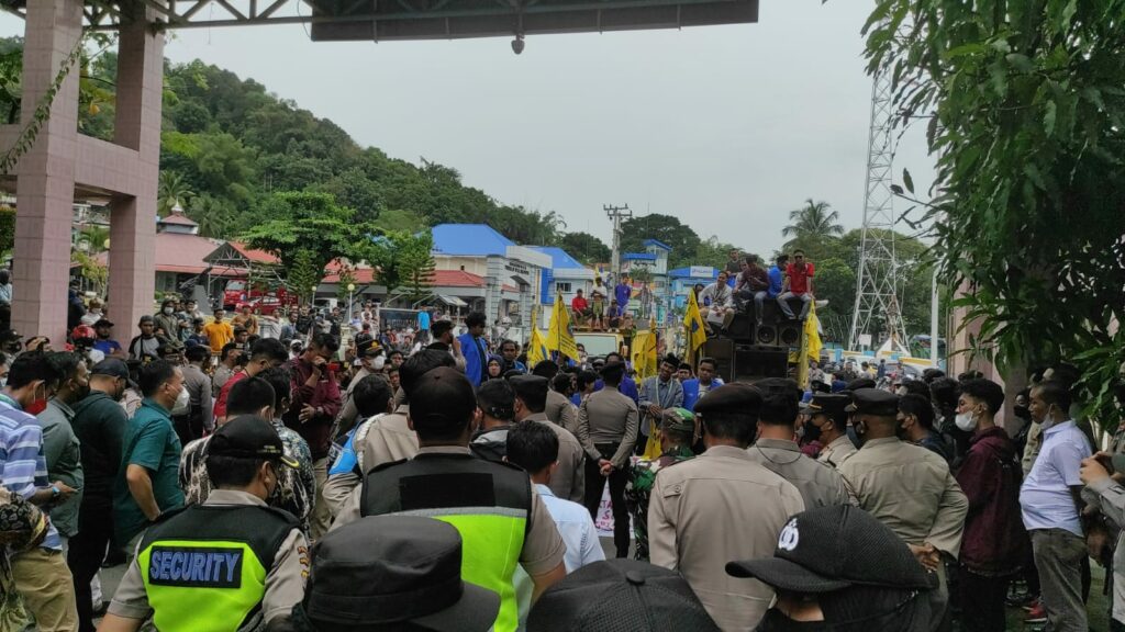 Hingga pukul 17.45 wita aksi masih berlangsung dengan pengawalan kepolisian. Sesuai ketentuan aksi dibatasi hingga pukul 18.00 wita. Jika tidak bubar, kepolisian dapat melakukan pembubaran paksa.