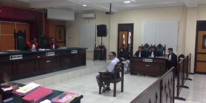 Dalam sidang ini penyidik menghadirkan saksi mantan anggota KPU Balikpapan Sunawiyanto.