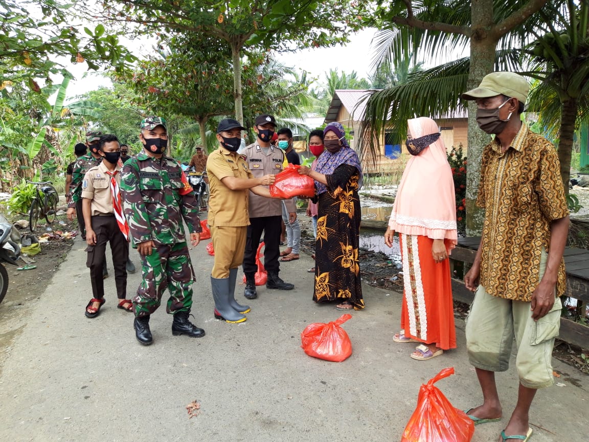 Sebanyak 75 Paket sembako dibagikan di desa Mahang Matang Landing, Hilir Banua Kecamatan Pandawan Kabupaten Hulu Sungai Tengah.