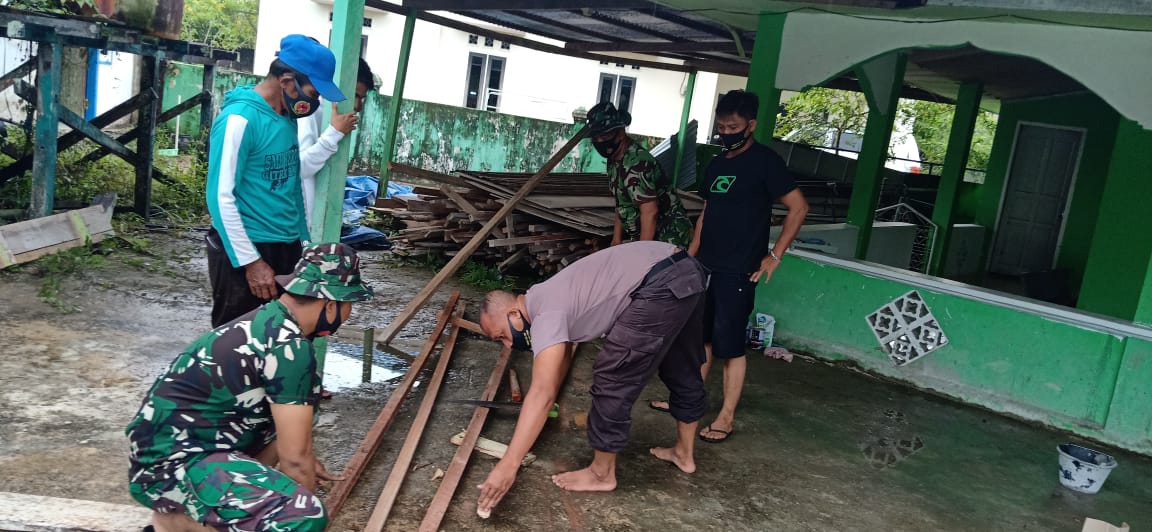 TARAKAN, Inibalikpapan.com – Sinergitas TNI Polri di TMMD Ke-109 Kodim 0907/Trk Tampak jelas terlihat pada kegiatan kali ini. Bahu membahu dalam merehab Masjid An-Nur di Kelurahan Karang Harapan ini sangat solid dan kompak, Senin (29/09/2020).