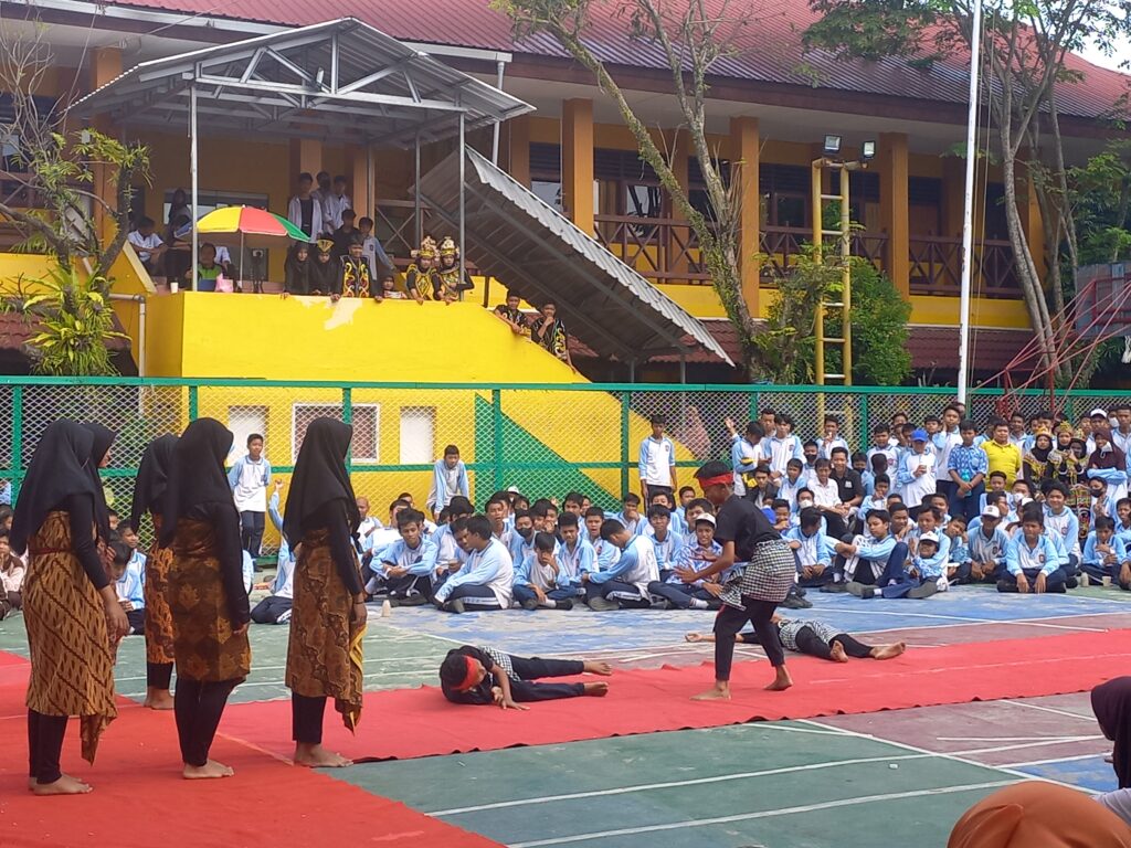 Juraida menambahkan, untuk Kurikulum merdeka untuk sementara masih diterapkan pada kelas 7, sedangkan untuk kelas 8 dan 9 masih menggunakan kurikum 2013, sehingga hari ini mereka hanya menyaksikan saja adik kelas melaksanakan praktek penguatan pancasila.