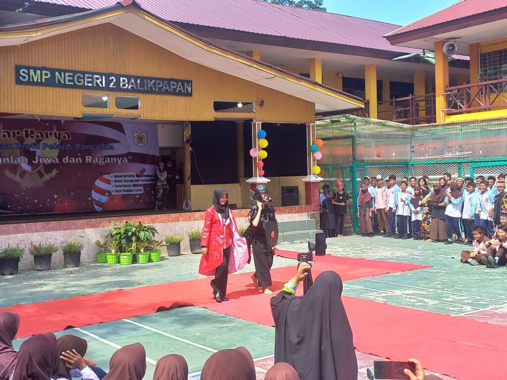 Kepala SMPN 2 Balikpapan, Hj Juraida SP.d MPd mengatakan, untuk gelar karya P5 yang dilaksanakan di SMPN 2 Balikpapan terlihat siswa sangat semangat luar biasa, makanya dari anak-anak ini mengembangakn semua kreativitasnya mulai Kelas 7.1 sampai 7.8 mulai dari tari- tarian dan pakaian-pakaian yang dari daur ulang plastik.