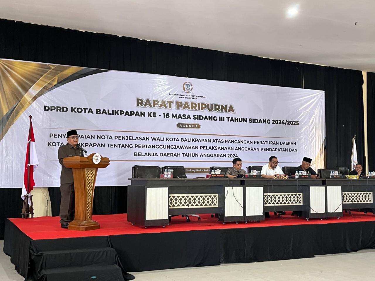 Hal ini disampaikan Wakil Wali Kota Balikpapan, H. Bagus Susetyo, dalam Rapat Paripurna DPRD Balikpapan ke-16 Masa Sidang III Tahun 2025 yang digelar di Gedung Parkir Lantai 8, Kantor DPRD Kota Balikpapan, pada Senin (23/6/2025).
