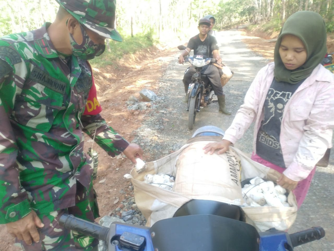 Sirajuddin dibantu anggota tanpa diminta, membantu Masitah menyadap karet dan membawakan hasil panennya di sela-sela waktu luang mengerjakan sasaran fisik TMMD. Masitah (40) merupakan warga Desa Biih, yang keseharianya bekerja sebagai buruh tani karet.