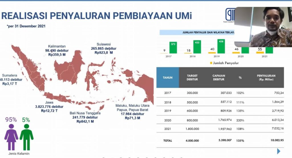 “Kita buatkan berita acara, angka pastinya penyaluran pembiayaan UMi kami di tahun 2021, dari target 1,8 juta debitur bisa direalisasikan mencapai sekitar 1,9 debitur artinya mencapai 108 persen,” akunya.