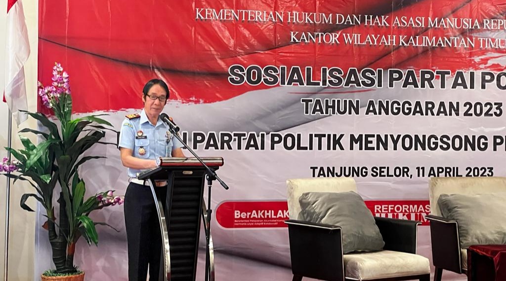 TANJUNG SELOR, Inibalikpapan.com – Kanwil Kemenkumham Kaltim terus gencar menggear sosialisasi Partai Politik di Tanjung Selor, Provinsi Kalimantan Utara dengan tema “Peran Partai Politik Menyongsong Pemilu Tahun 2024”, Selasa, (11/04/2023).