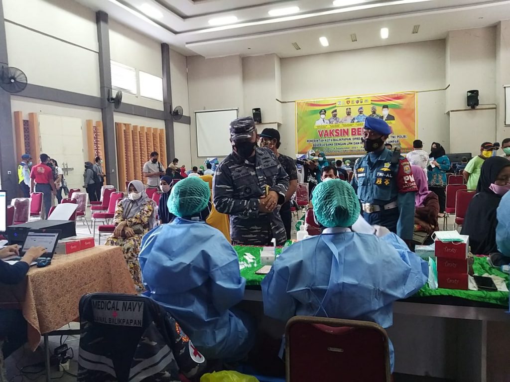 Danlanal Balikpapan saat meninjau vaksinasi di gedung pertemuan Batu Ampar