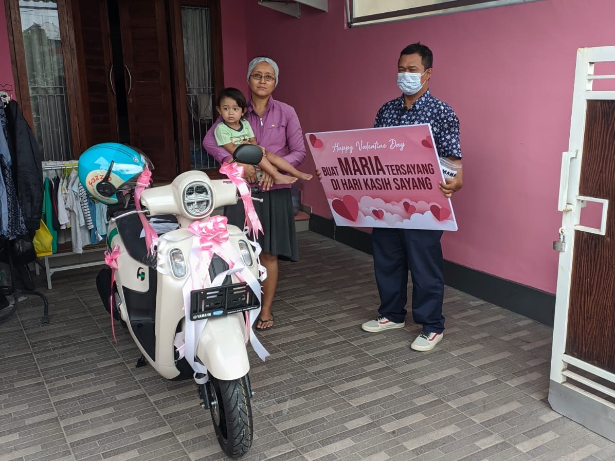 Pemberian surprise kepada pasangan tidak saja dilakukan oleh muda-mudi tapi untuk semua kalangan usia. Seperti Edo (37) yang memberikan kejutan kepada istrinya berupa 1 unit Yamaha Fazzio Neo berwarna Beige.