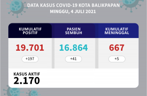 Update 6 Juli 2021 : Tembus 2.233 Orang Terpapar Covid-19 di Balikpapan, 682 Meninggal Dunia