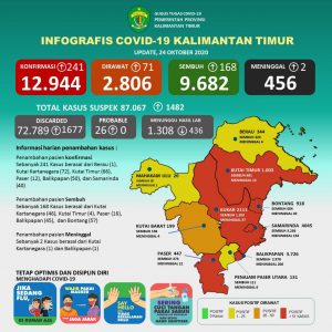 Update 24 Oktober 2020 : Bertambah 241 Kasus Positif Covid-19 di Kaltim, 168 Pasien Sembuh