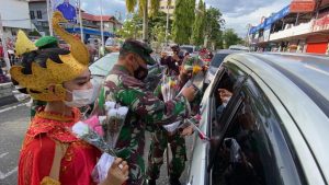 Bersama Paguyuban, Kodim 0905 Balikpapan Bagikan 500 Masker dan Bunga