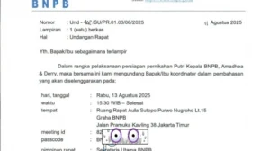JAKARTA, inibalikpapan.com – Badan Nasional Penanggulangan Bencana (BNPB) akhirnya buka suara soal viralnya surat undangan rapat persiapan pernikahan putri Kepala BNPB, Letjen TNI Suharyanto. Pihak BNPB membenarkan keaslian surat tersebut, tetapi menegaskan tidak ada anggaran negara yang digunakan dalam kegiatan itu. Sekretaris Utama BNPB, Rustian, mengatakan rapat tersebut memang ditujukan untuk panitia yang dibentuk oleh […]