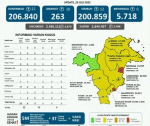Update 28 Juli 2022 : Bertambah 56 Positif COVID-19 di Kaltim, Pasien Sembuh 36 Orang