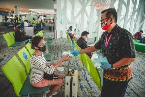 Bandara Sepinggan Balikpapan Bagikan 500 Masker dan 100 Hand Sanitizer kepada Pengunjung