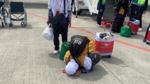 Tiba Di Tanah Air, Jemaah Haji Kloter 1 Debarkasi Balikpapan Lakukan Sujud Syukur
