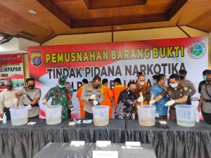 BALIKPAPAN, Inibalikpapan.com – Polresta Balikpapan memusnahkan  5,33 kilogram narkoba jenis sabu pada Kamis (03/12). Narkoba yang dimusnahkan tersebut hasil pengungkapkan kasus pada 25-26 November 2020. “Pada hari ini Kamis 3 Desember 2020 total pemusnahan barang bukti sabu total sebanyak 5,36 kilogram,” ujar Kapolresta Balikpapan Kombes Pol Turmudi dalam konfrensi pers. “Pemusnahan barang bukti narkoba hasil […]