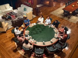 Presiden Prabowo BOGOR, Inibalikpapan.com – Presiden Prabowo Subianto menggelar pertemuan terbatas dengan Ketua MPR Ahmad Muzani dan sejumlah pejabat tinggi negara di kediaman pribadinya, Hambalang, Bogor, Sabtu malam (12/10/2025).Pertemuan yang berlangsung dalam suasana hangat itu membahas sejumlah isu strategis nasional dan arah kebijakan pemerintahan ke depan. Sekretaris Kabinet (Seskab) Teddy Indra Wijaya menyebut, Presiden Prabowo […]