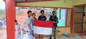 Satgas Pamtas Bagikan Bendera Merah Putih Ke Warga