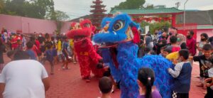 Meriahkan Imlek, Tiga Barongsai Beraksi di Klenteng Guang De Miao Pasarbaru