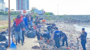 Tumpukkan Sampah di Pantai Dusit Balikpapan di Bersihkan
