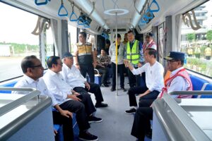 NUSANTARA, Inibalikpapan.com – Presiden Joko Widodo bersama sejumlah Menteri Kabinet Indonesia Maju meninjau trem otonom atau Autonomous Rail Transit (ART), di Ibu Kota Nusantara (IKN), Selasa (13/8). Dalam kesempatan itu Presiden Jokowi berharap ke depannya angkutan transportasi massal berbasis listrik tersebut dapat digunakan di IKN dan juga kota-kota lainnya di Indonesia. “Tadi sudah saya gunakan. […]