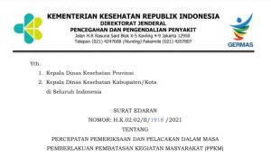 Kemenkes Terbitkan Surat Edaran Percepatan Testing dan Testing di Wilayah yang Terapkan PPKM