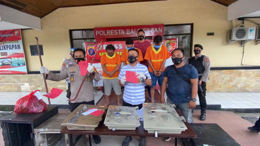 BALIKPAPAN, Inibalikpapan.com — Aksi pencurian dengan pemberatan yang dilakukan secara komplotan kembali menyasar perusahaan di Balikpapan, kali ini Satreskrim Polresta Balikpapan bersama Satreskrim Polsek Balikpapan Timur berhasil mengamankan tiga tersangka yang melakukan tindak kejahatan pecurian brangkas di PT Shunli Aneka Food dan PT Halmahera Indoserv keduanya berada di kawasan Balikpapan Timur.